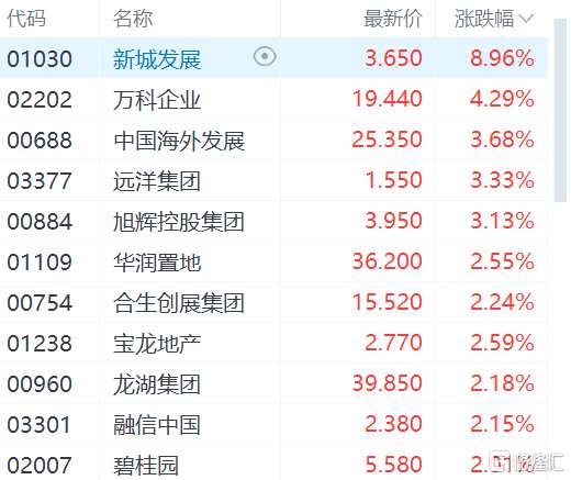摘要: 互聯(lián)網(wǎng)5月3日丨新城發(fā)展大漲近9%領(lǐng)漲,萬科企業(yè)漲逾4%,遠洋集團、中國海外發(fā)展等漲逾3%。為滿足購房者合理住房需求,多城相繼調(diào)整房地產(chǎn)政策,且這一勢頭在4月份明顯加速。