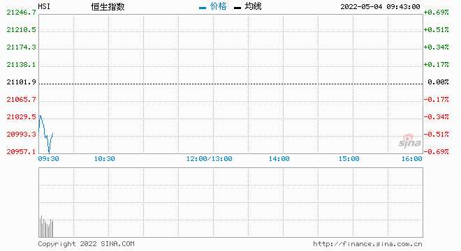 摘要: 5月4日消息,美股周二收高,主要股指連續(xù)第二個(gè)交易日上漲。今日開盤,恒生指數(shù)低開0.36%,報(bào)21025.7點(diǎn);國企指數(shù)跌0.51%,紅籌指數(shù)跌0.02%。恒生科技指數(shù)跌0.9%,