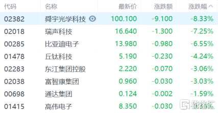 大型科技股集體大跌。嗶哩嗶哩跌超8%,阿里、京東、百度跌超6%,快手、攜程、美團(tuán)、小米、騰訊、網(wǎng)易等跟跌。