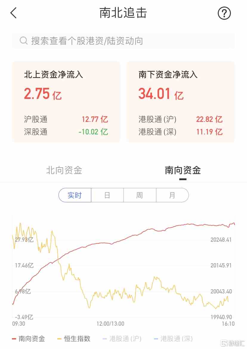 今日,南下資金凈流入34.01億港元,其中港股通(滬)凈流入22.82億港元,港股通(深)凈流入11.19億港元。