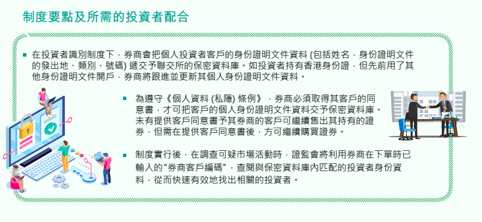投資者識別碼制度,要求相關(guān)受規(guī)管中介人必須逐一為現(xiàn)有參與港交所上市證券場內(nèi)外交易的客戶編配唯一的券商客戶編碼。每個券商客戶編碼應(yīng)與該特定客戶的客戶識別信息配對,包括客戶名稱、身份證明文件的簽發(fā)國家或司法管轄區(qū)、身份證明文件的類別及身份證明文件的號碼。