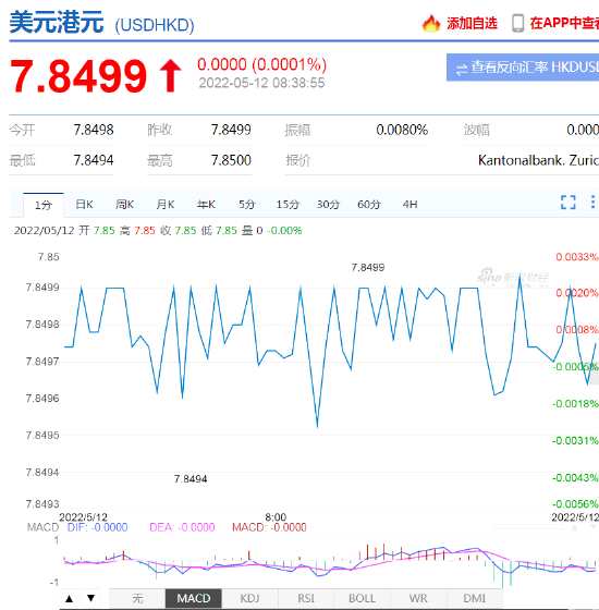 摘要: 5月12日,港匯觸及7.85的弱方兌換保證水平,為自2019年5月以來首次。香港金管局在今日凌晨向銀行買入15.86億港元,向市場沽出美元,此操作會令銀行體系總結(jié)余減少,