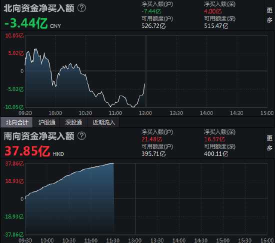 午評(píng):北向資金凈賣(mài)出3.44億元 滬股通凈賣(mài)出7.44億元