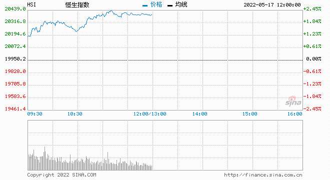 5月17日消息,隔夜美股繼續(xù)走跌,道指上漲26.76點(diǎn),至32223.42點(diǎn),漲幅0.08%。標(biāo)準(zhǔn)普爾500指數(shù)下跌0.39%,盤中一度下跌0.99%。納斯達(dá)克綜合指數(shù)下跌1.2%。今日早盤,港股高開高走,截止午盤,恒指漲2.23%,報(bào)20395.66點(diǎn),科技、汽車、金融板塊漲幅居前