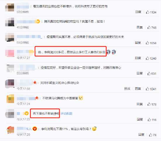 更多網(wǎng)友則表示,“再下滑也不影響掙錢(qián)”,“凈利潤(rùn)200多億,居然這么多打工人替他們叫苦”,“游戲到底有多賺錢(qián)”,“所以王者三天一個(gè)新皮膚瘋狂圈錢(qián)”。