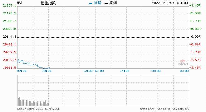 恒指跌幅擴大至3.5%失守20000點 恒生科指跌幅擴大至5%