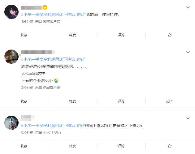 有網(wǎng)友表示:我的mi,你堅(jiān)持住。也有網(wǎng)友分析:利潤下降50%,但是營收才下降5%。