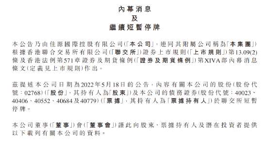 摘要: 佳源國際控股在港交所公告,董事會獲悉,于2022年5月18日,由本公司控股股東明源集團投資有限公司,由公司主席兼非執(zhí)行董事沈天晴最終控制持有的134.8萬股股份被一家證券公司在公開市場強制出售,