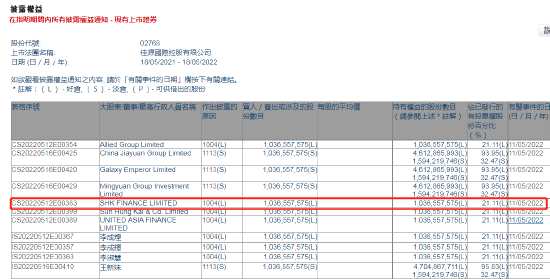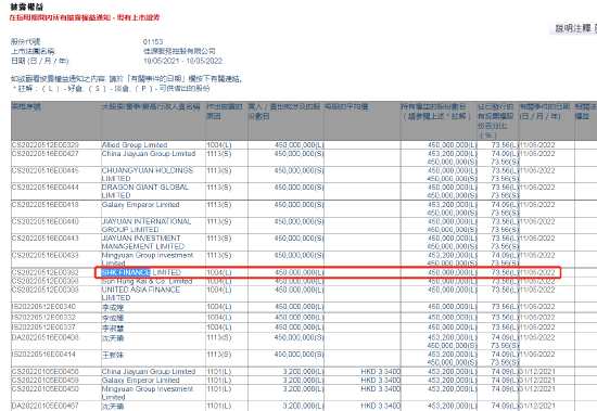 同樣在5月11日,佳源國際控股質(zhì)押了股份給新鴻基財務(wù),涉及股份達10.365億股,股權(quán)占比約21.11%。
