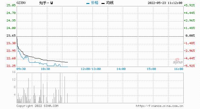 5月23日消息,知乎跌近6%,現(xiàn)報(bào)22.25港元,最新市值72.55億港元。