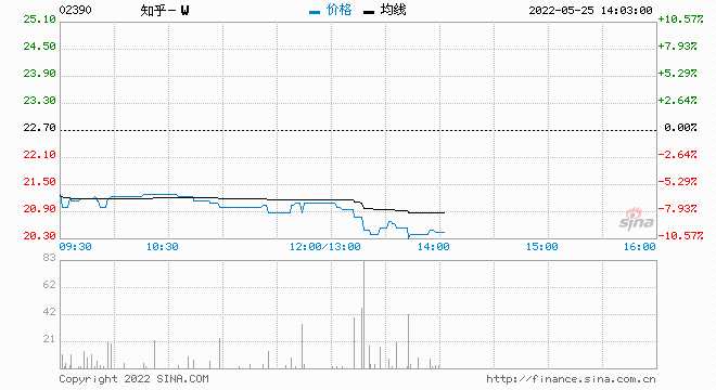 5月25日消息,知乎跌幅擴大至9.69%,現(xiàn)報20.50港元,最新市值66.84億港元。