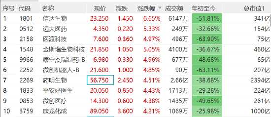 消費(fèi)、醫(yī)療大爆發(fā), 信達(dá)生物漲6.6%,遠(yuǎn)大醫(yī)藥漲超5%,醫(yī)渡科技、金斯瑞、康寧杰瑞等漲5%。