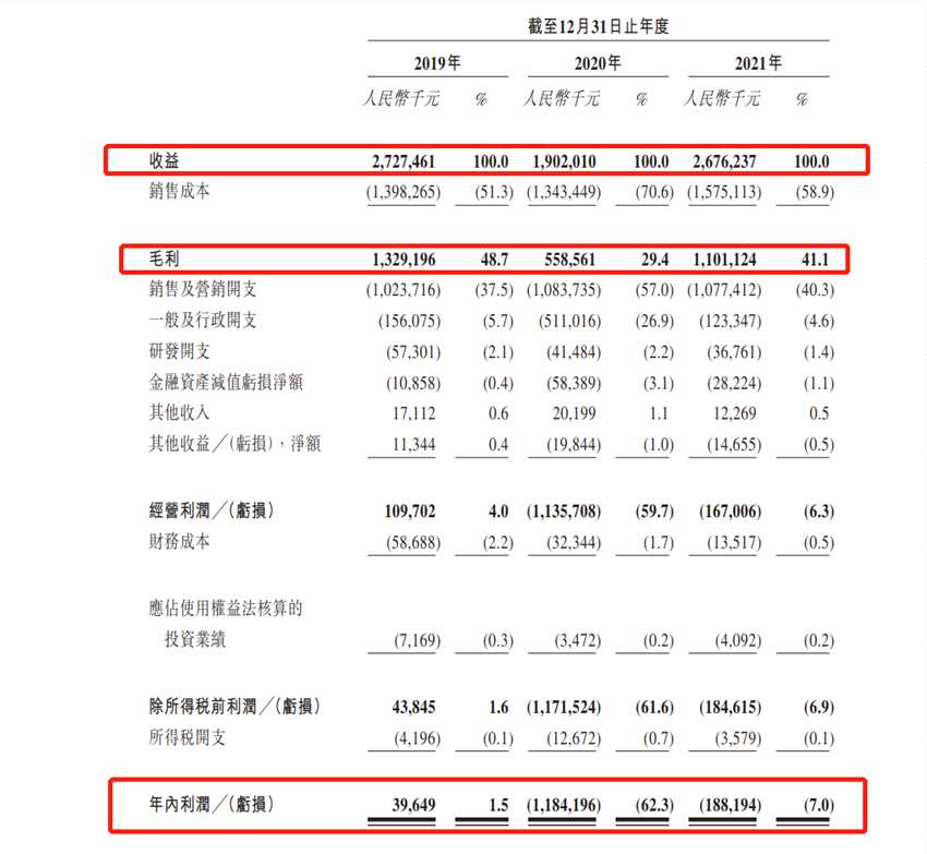 財務(wù)數(shù)據(jù)方面,招股書顯示,友寶在線2019年-2021年收入分別為27.27億元、19.02億元、26.76億元;毛利分別為13.29億元、5.59億元、11.01億元;年內(nèi)利潤分別為3964.9萬元、-11.84億元及-1.88億元,值得注意的是友寶在線2020年由盈轉(zhuǎn)虧,虧損高達11.84億元,截止2021年虧損縮窄至1.88億元,過往兩年累計虧損13.72億元。
