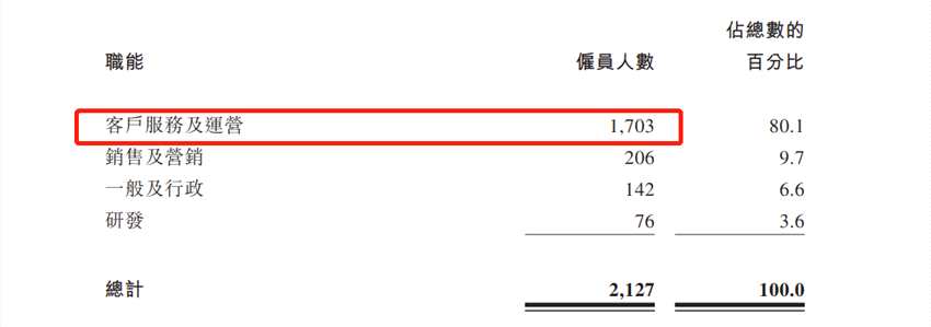 招股書顯示,截至2021年12月31日,友寶在線擁有員工2,127人,其中客戶服務(wù)及運營人員1703人,銷售及營銷人員占比9.7%,僅有206人。
