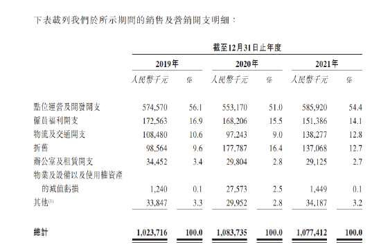 不過,友寶在銷售及營銷開支中投入巨大,分別投入10.24億、10.84億以及10.77億元。而在這部分開支中,點位運營及開發(fā)開支占據(jù)了支出的一半以上,點位運營及開發(fā)開支主要指就維護及擴展友寶點位網(wǎng)絡(luò)已付或應(yīng)付點位供貨商及點位合伙人的開支。