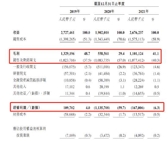 根據(jù)公司財報,公司2019年至2021年分別實現(xiàn)收入27.27億元、19.02億元以及26.76億元,近三年收入波動較大。同期,公司分別實現(xiàn)毛利13.29億元、5.59億元以及11.01億元。