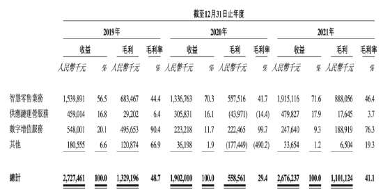 當(dāng)然,友寶的大部分收入來自智慧零售業(yè)務(wù)。于2019年、2020年及2021年,智慧零售業(yè)務(wù)產(chǎn)生的收入占比分別為56.5%、70.3%及71.6%。