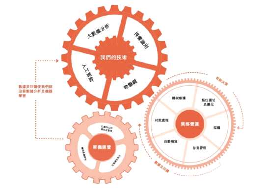 該智慧運營系統(tǒng)的運行將展現(xiàn)出“飛輪效應(yīng)”——線上高密度零售網(wǎng)絡(luò),搭配更豐富的產(chǎn)品,高頻觸達(dá)消費者,同時產(chǎn)生大量數(shù)據(jù)供人工智能分析,近一步優(yōu)化決策,包括點位選址、商品組合優(yōu)化及采購、倉儲存活管理、自動貨柜機(jī)補(bǔ)貨、付款處理及機(jī)器維護(hù)等。
