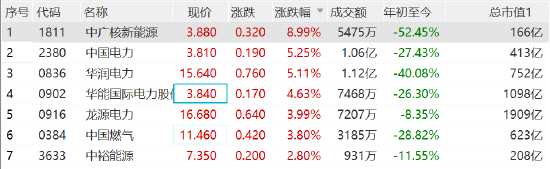 國家發(fā)改委、能源局印發(fā)《關(guān)于促進(jìn)新時(shí)代新能源高質(zhì)量發(fā)展的實(shí)施方案》,提出2030年風(fēng)光裝機(jī)超過12億千瓦的總體目標(biāo),中國電力股走高,中廣核新能源漲9%,中國電力、華潤電力漲超5%。