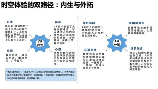 從具體的技術(shù)來看, VR技術(shù)具有進(jìn)步和退步屬性。為什么它有進(jìn)步屬性?從進(jìn)步屬性來看,可以實現(xiàn)三維化感官體驗。從退步屬性來看,VR在現(xiàn)實層面中有較多限制且存在一定危險。使用過程中產(chǎn)生的感覺與現(xiàn)實不一致,會產(chǎn)生眩暈感,連續(xù)使用時長一般最多為35分鐘。VR頭盔的重量、易損性等會限制其發(fā)展。