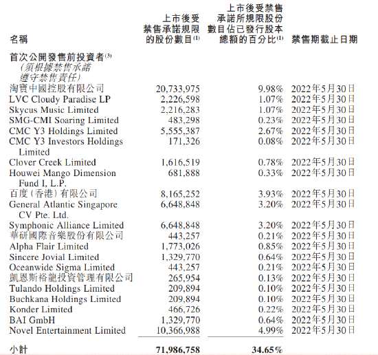 而基石投資者持有的1330萬(wàn)股股份將于6月1日之后解禁,網(wǎng)易云的基金包括網(wǎng)易、索尼以及奧比斯投資管理有限公司Orbis。