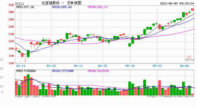 摘要: 比亞迪AH股集體走高,A股突破330元?jiǎng)?chuàng)歷史新高,H股漲超3%,報(bào)311.4港元。比亞迪(002594)6月8日晚間公告,公司上調(diào)回購(gòu)公司股份價(jià)格上限,由300元/股上調(diào)至不超過(guò)400元/股。