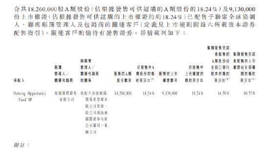 此外,公司聯(lián)席保薦人之一的海通國際獲配發(fā)1826萬股A類股份及913萬股上市權(quán)證,占發(fā)售股份的18.24%,占總股本的14.59%。