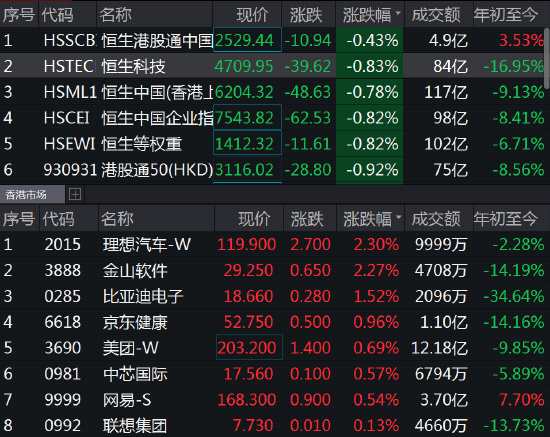 恒生科技指數(shù)持續(xù)拉升,跌幅不足1%,理想汽車、金山軟件漲超2%,美團(tuán)翻紅,網(wǎng)易走高,阿里跌幅不足2%。