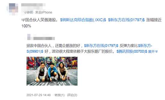 有股民直言,“中國合伙人笑傲港股”,并表示新東方在線彈性比新東方大,很大程度依賴于鵝廠。