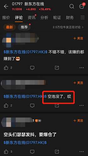 除了空倉的股民,還有爆倉的股民!股民表示,“空池沒了”。其實就是空倉,新東方在線漲的越猛,空倉的股民虧的越多。
