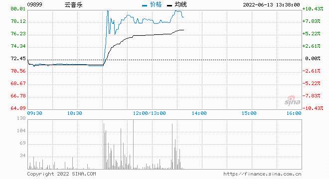 摘要: 6月13日消息,云音樂盤中大幅拉升,漲逾10%。網(wǎng)易云音樂10日宣布,正式與韓國SM娛樂公司達(dá)成合作協(xié)議,雙方將在音樂版權(quán)、藝人宣傳及推廣等領(lǐng)域展開深層次的合作。