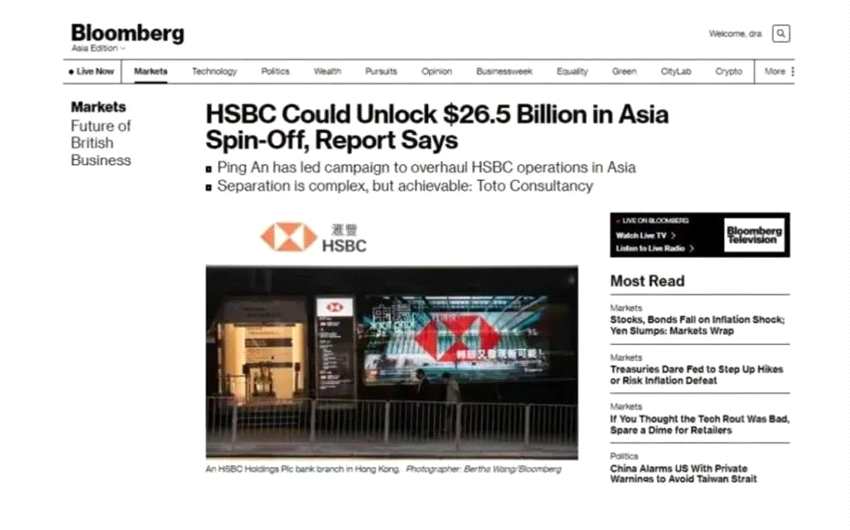 對(duì)于匯豐控股(00005)亞洲分拆上市的討論聲量越來(lái)越大。瑞信和彭博曾先后圍繞匯豐拆分事件發(fā)布過研報(bào),紛紛贊同拆分提議。