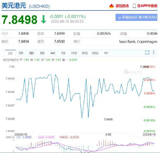 港匯長(zhǎng)時(shí)間觸及7.85的弱方兌換保證,香港金管局繼6月14日午間香港交易時(shí)段承接43.96億港元沽盤(pán)后,15日晨在紐約交易時(shí)段,再承接92.55億港元沽盤(pán),一日兩度共承接136.51億港元沽盤(pán),銀行體系結(jié)余將跌至3062.24億港元。
