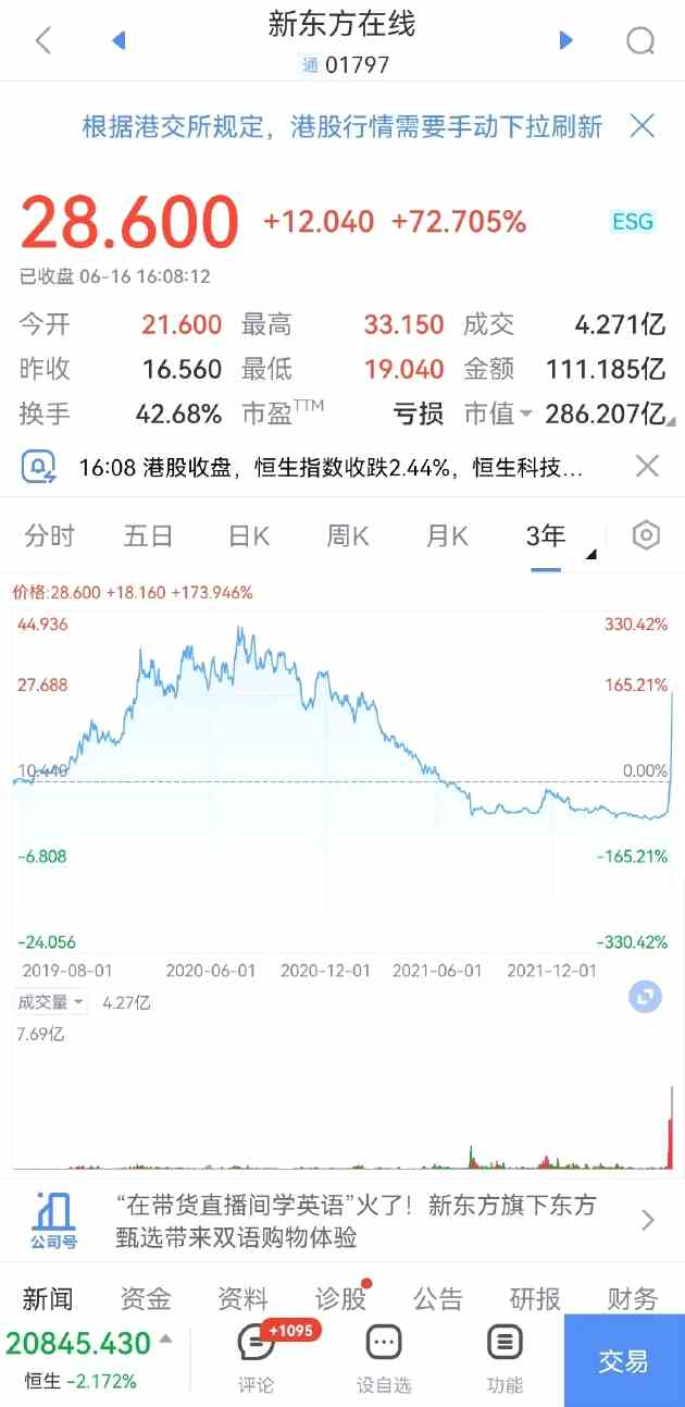 新東方在線收漲超72%,蔚來(lái)漲超4%,有贊跌超19%,快手跌約9%