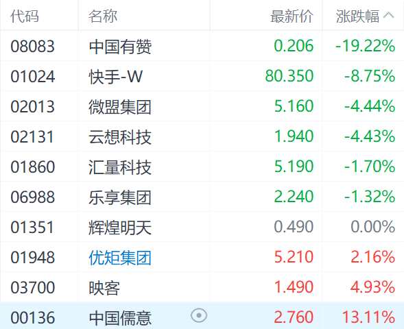 在短視頻概念股中,中國(guó)有贊(08083.HK)、快手-W(01024.HK)、微盟集團(tuán)(02013.HK)分別下跌19.22%、8.80%、4.63%。