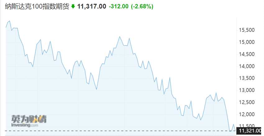 同時(shí)美股三大期指午后跳水,美國(guó)標(biāo)普500指數(shù)期貨跌超2%,道瓊斯30指數(shù)期貨跌1.87%,納斯達(dá)克100指數(shù)期貨跌2.68%。