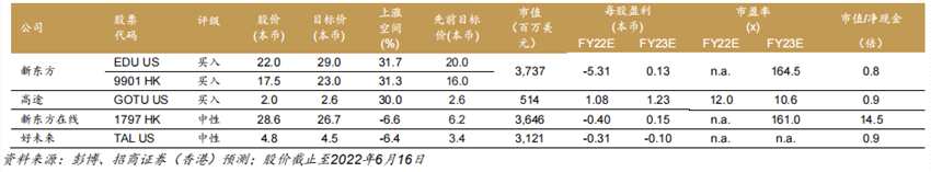 該行此次予教培股整體目標(biāo)價(jià)與評(píng)級(jí)變動(dòng)如下: