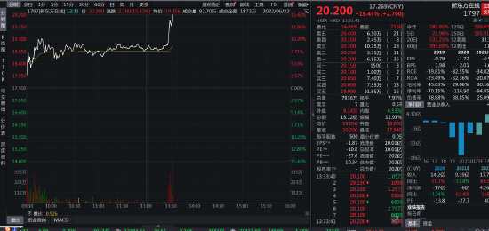 新東方在線午后暴漲逾15%,股價重返20港元上方