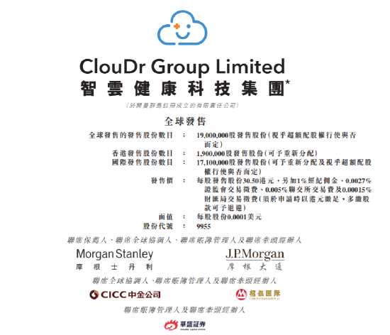 智云健康開始招股:發(fā)售價30.5港元 嘉實(shí)基金等5名基石投資4500萬美元