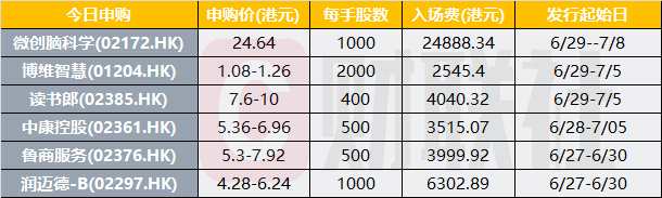 6月29日訊(編輯 周新旸)為您帶來今日港股新股資訊。