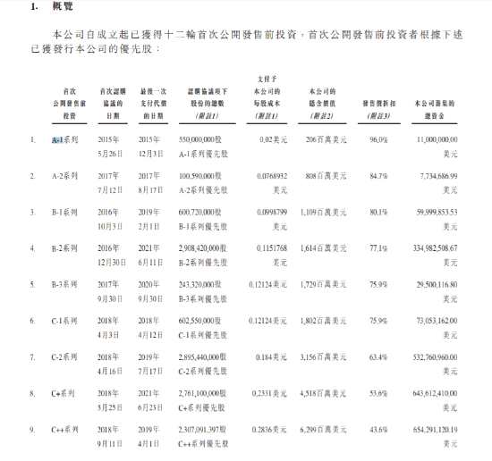 軟銀則是從C+輪開始投資,分別投資4.29億股、23.07億股、13.97億股、1.78億股、4.2億股,目前吃過油47.3億股,對應(yīng)成本分別為0.2331美元、0.2836美元、0.315美元、0.3536美元和0.4094美元,持倉成本為1億美元、6.54億美元、4.4億美元、0.63美元、1.72美元,共計耗資14.3億美元(大約112億港元)。