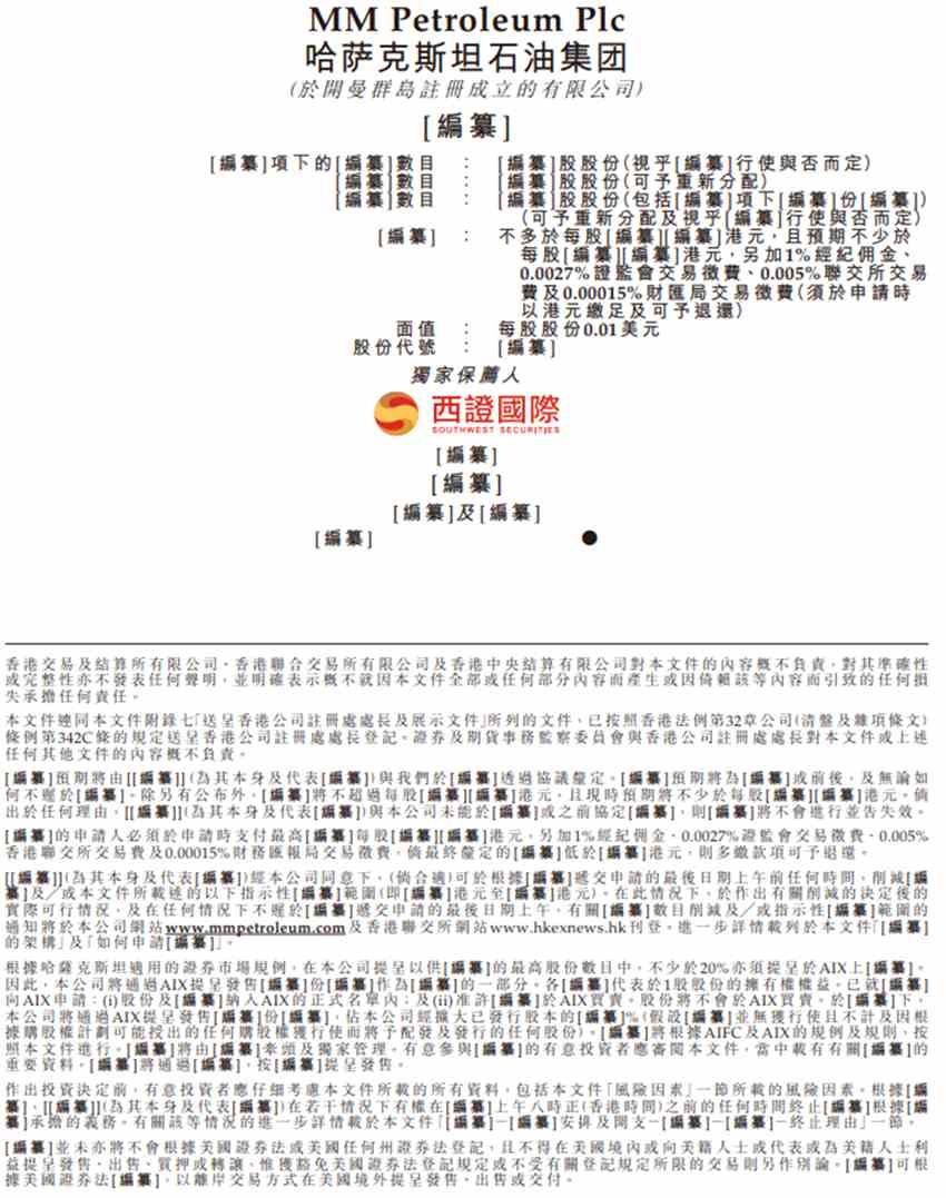 7月1日訊(編輯 胡家榮)作為哈薩克斯坦斯坦境內(nèi)五大石油公司之一哈薩克斯坦石油集團(tuán)在6月30日向港交所提交上市申請,此外,西證國際為獨(dú)家保薦人。