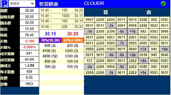 摘要: 7月5日消息,智云健康預(yù)期明日上市,公司發(fā)行1900萬股股份,每股定價(jià)30.50港元,每手100股。截至發(fā)稿,據(jù)輝立證券顯示,暗盤跌0.984%,現(xiàn)報(bào)30.20港元。