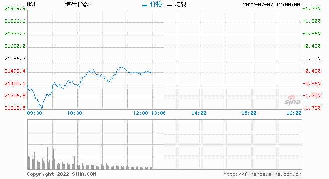 7月7日消息,美股周三小幅收高。美聯(lián)儲會議紀(jì)要稱,如果通脹未能下降,美聯(lián)儲可能會采取“更嚴(yán)格”的政策。今日港股低開1.08%,隨后跌幅收窄,截至午盤,恒生指數(shù)跌0.41%,報21498.91點(diǎn);國企指數(shù)跌0.74%,紅籌指數(shù)漲0.14%。
