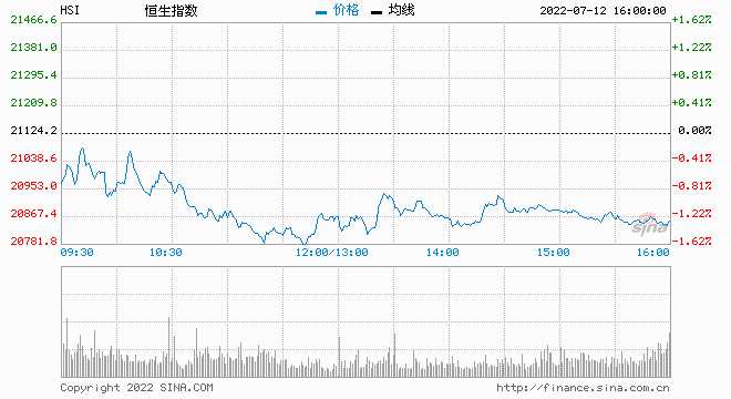 摘要: 昨日A股港股大跌,歐美股市普跌,市場(chǎng)預(yù)計(jì)美國(guó)6月份通脹仍將高企,今日早盤,恒指低開低走,午后恒指跌幅進(jìn)一步擴(kuò)大,恒指收跌1.32%,報(bào)20844.74點(diǎn),比亞迪(002594)領(lǐng)跌藍(lán)籌。