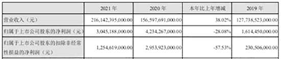 2021年的比亞迪,受困于原材料上漲、疫情等不利因素,實(shí)現(xiàn)歸母凈利潤30.45億元,同比下降28.08%,并且出現(xiàn)增收不增利的現(xiàn)象。