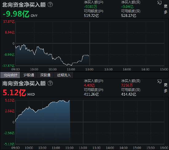 午評(píng):北向資金凈賣出9.98億元 滬股通凈賣出9383萬元