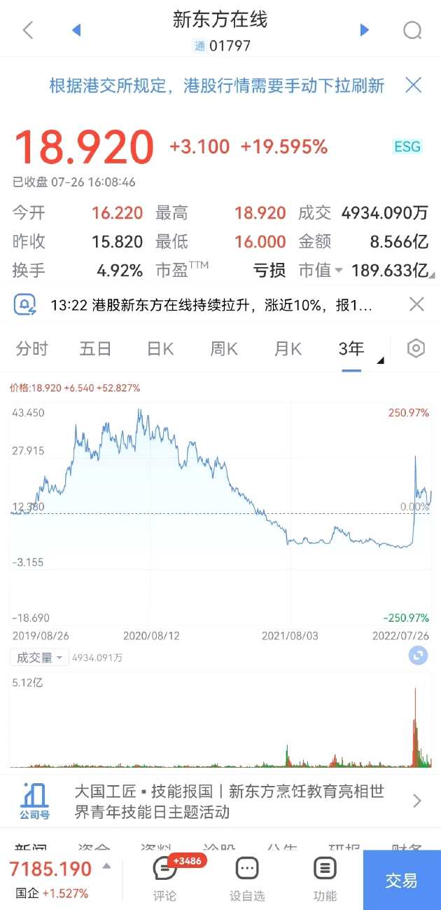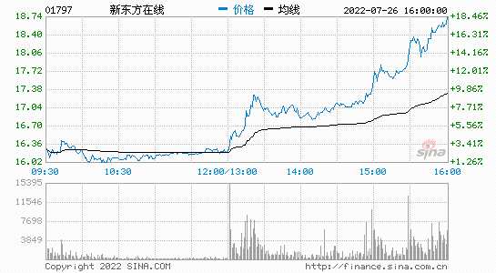 新東方在線收漲近20%,貝殼漲超9%,阿里巴巴漲4.8%