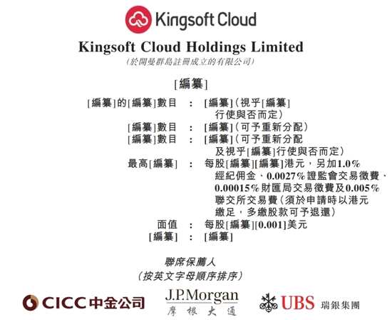 港交所近日披露,金山云遞表港交所主板申請上市,中金公司、摩根大通、瑞銀集團為聯(lián)席保薦人。