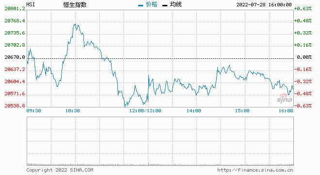 北京時(shí)間7月28日凌晨2點(diǎn),美聯(lián)儲宣布,將政策利率聯(lián)邦基金利率的目標(biāo)區(qū)間從1.50%至1.75%升至2.25%至2.50%,再次加息75個(gè)基點(diǎn),符合市場預(yù)期,金管局跟隨加息75基點(diǎn),納斯達(dá)克指數(shù)暴漲4%,今日早盤,恒指高開低走,午后跌幅有所收窄,截至收盤,恒指跌0.23%,報(bào)20622.68點(diǎn)。